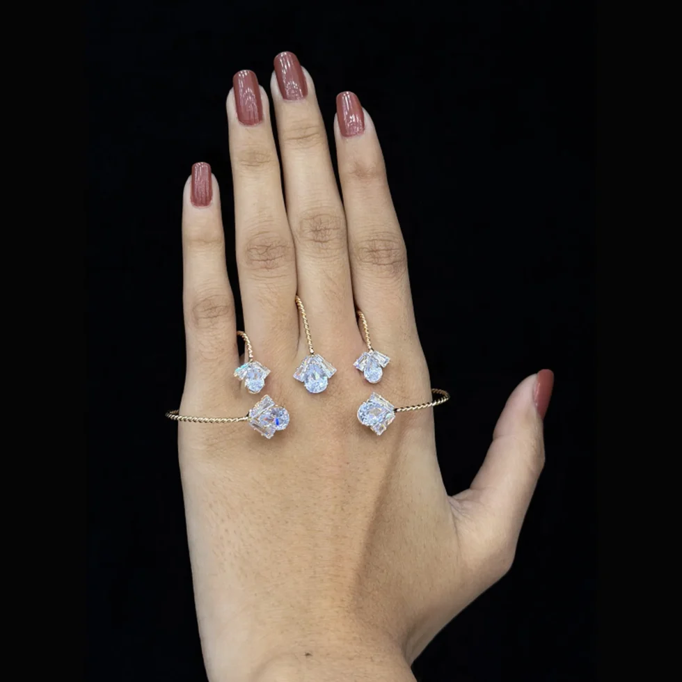 Perfect for weddings, evening parties, or festive occasions, this finger bracelet pairs effortlessly with gowns, sarees, or chic modern outfits. Lightweight yet striking, it’s ideal for women who love refined sparkle with a bold contemporary edge — a jewellery piece that redefines hand adornment with pure brilliance.