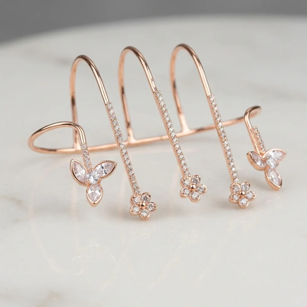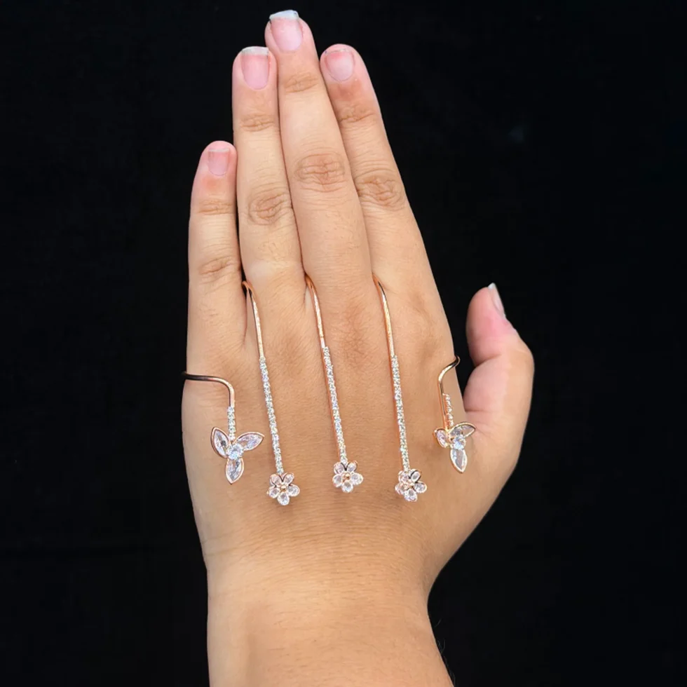Elegant rose gold finger bracelet with floral crystal detailing — a perfect blend of modern fashion and ethnic beauty.