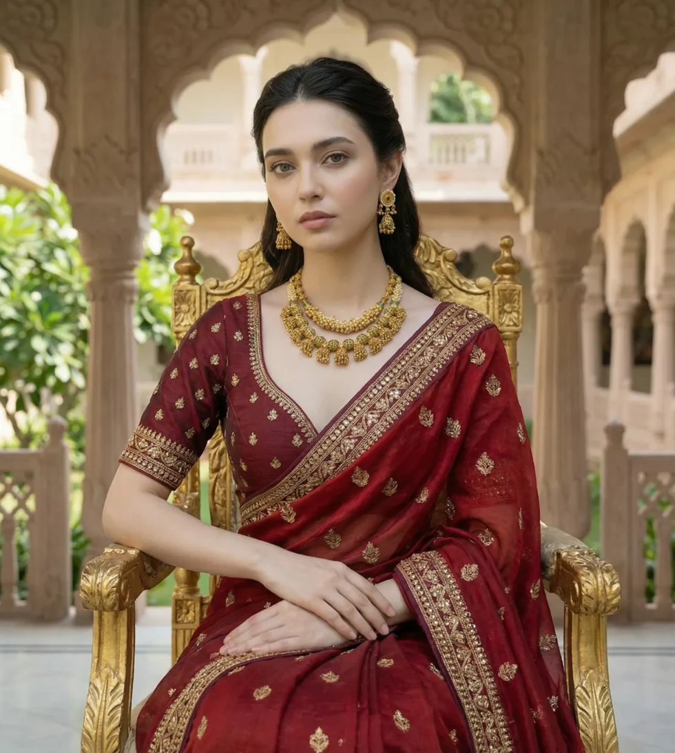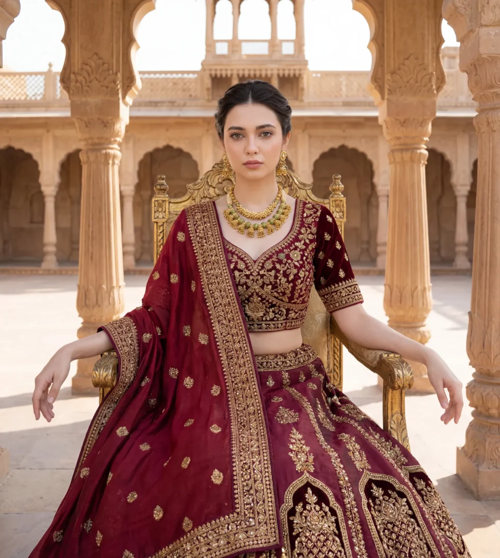 A majestic gold-plated necklace set with matching earrings — perfect for weddings, receptions, and festive celebrations.