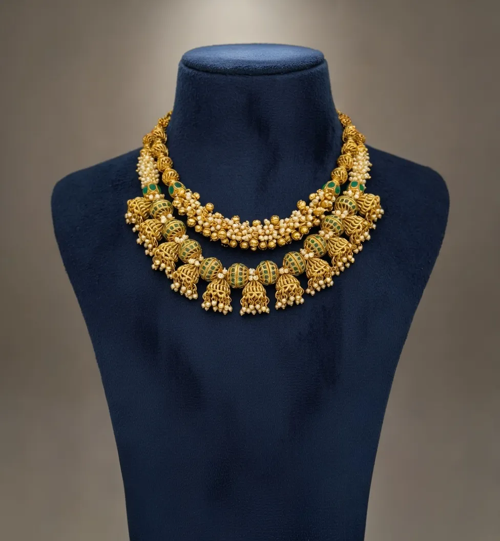 Ideal for brides, festive gatherings, and cultural events, this necklace set beautifully complements sarees, lehengas, and ethnic dresses. Lightweight yet luxurious, it ensures comfort without compromising on grandeur.